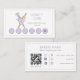 Enkel, ren och minimal utformning av stil-bageriförmånskort med vattenfärg som bakar verktyg (rullstift och rörsäck) En blommigt för snyggt med lätt lila skapar ett modernt utseende. Anpassa med kortet namn och rabattinformation. Den omvända sidan är designad i ett rent och minimalt stil med företagets namn och affärsområde för märkre och personligens kontaktinformation med Qr-kod. Ett enkelt affärskort, chic och snyggt för hembagare, bagerier, konditor, konditor, köksmästare och mycket annat.