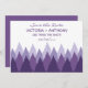Dessa sparar datumkorten är perfekt för alla par som planerar en skog i bröllop firande. Utformningen har ett skogsområde i trendiget i skuggor av lila på vit bakgrund med en färg-samordnad redigerbar ordalydelse. Den gedigna utformningen kan vara personligen till kostym för ditt speciella evenemang och kommer att vara perfektens tillkännagivande för alla tematiska party, inklusive: möhippor, förlovningar, länder, möhippor och mycket, mycket mer.