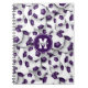Denna fotbollsteman spiralanteckningsbok har ett mönster av slumpmässigt arrangerade lila och vita fotbollar i varierande storlekar som vrids åt alla håll på en vit bakgrund - spelarens namn och monogram eller tröjnummer kan anpassas - av katz_d_zynes