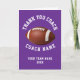 Lila fotbollstränare Team Tacksamhet Tack Kort