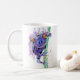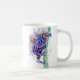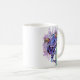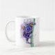 traditionell vattenfärg och bläck-teckningar från en lila färgad groda som klättrar uppåt i träd medan man stirrar på tittaren på ett kaffe mugg