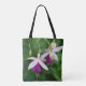 Ditt val av snyggt till påsen eller korsningspåsen med ett övertryck som innehåller en fotobild av hängning, lila Fuchsia-blommor med vita sepaler. En underbar, blommigt design! Markera väskan stil och storlek.
