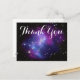 Ett vackert lila och blått galaxhop rymdfoto med en vit modern kalligrafi tack för en bröllopsdesign. Skapa dina egna anpassade vykort.