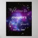 Skapa ditt eget välkomsttecken för fotomöhippan poster. Det här fotot har ett blått, lila och magenta galaxi-kluster. Ett foto från söten för ditt känslotema bröllop. Du kan ändra den vita moderna stil-texten och kalligrafteckensnittet.