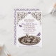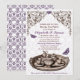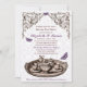 Lila Garden Möhippa Tea Party-inbjudningar har en teuppsättning och fjärilar med en blommigt rulla huvud och ornera mönster i lila, brun och vit.