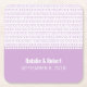 Låt dina personligheter skina igenom med eleganten Geek Chic Binary Code Bröllop Papper Underläggs. Med en lätt binär färgad-kod med numrerad bakgrund och ett enkelt prickat gräns är den här designen ett underskattat sätt att visa din skönhet med en sofistikerad fläck. Enkel att anpassa, lägg bara till information om bröllop i fält som tillhandahålls. Klicka på knappen "Anpassa" om du vill ändra typsnitt eller färg.