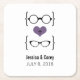Quirky och chic Geeky Glasses Bröllop Pappra Underlägg med ett lila hjärta som är täckt av två par geekyeglass, ett manligt par och ett giglipperpar som representerar stam och brud. De här sofistikerade underläggen är perfekt för ditt nervösa bröllop! Enkel att anpassa, lägg bara till informationen om din stora dag i den fält som tillhandahålls. Klicka på knappen "Anpassa" för att hitta ytterligare anpassningsalternativ.