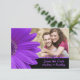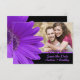 Enkelt, mörk lila gerbera daisy-fotokort för bröllop spara datum-meddelande. Färg på det här lila daisy-blomman bröllop spara datum-kortet är lila och svart. Det skulle vara underbart för ett bröllop med ett tema för blommigt av lila daisy.