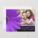 Enkelt, mörk, lila gerbera daisy blomma fotomeddelanden från bröllop spara datum. Färg på detta kort för lila daisy bröllop spara datum är lila och svart. Det skulle vara underbart för ett bröllop med ett tema för lila daisy av blommigt.