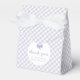 En markerad lila och vit gingham gör en klassisk och välvillig favör som koordinerar med Lea Delaveris Design Gingham-babyduschsamlingen. Framsidan har en plats för anpassade - ett namn, tack, det är en flicka - tillsammans med en söt poka-baby-båge. Den här favoritlådan är perfekt för varje flickdusch och fungerar också bra för en baptism.