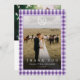 Elegant Rustik Lila Rutig Vapen Monogram 2 Foto "Tack"-kort.