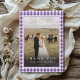 Elegant Rustik Lila Rutig Vapen Monogram 2 Foto "Tack" Kort.