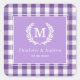 Anpassad monogramstämpel lila fyrkantig dekal med gingham-mönster - 6 färger.
