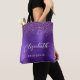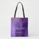 Denna eleganta moderna brudtjänsteflicka-taska har en lila falsk glitterkant. Lägg till hennes namn i vit handskriven skrift och ordet "brudtjänsteflicka" eller annan titel i sans serif-teckensnitt på en lila falsk borstad metallbakgrund.