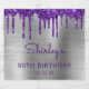 Dessa eleganta etiketter för gnistrande vinflaska till 90-årsfesten har en gnistrande mörklila falsk glitterdropp-kant på en silverfärgad falsk borstad metallbakgrund. Personalisera dem med hennes namn i mörklila handskrivna stil, med hennes födelsedag och datum nedan i sans serif-teckensnitt.