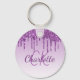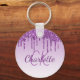 En lila övertoningsbakgrund som dekoreras med faux glitter drops, färgdroppstift. Anpassa och lägg till ditt namn och monogram initialer. Lila färgad text. Namn är skrivet med ett modernt handskript i stil.