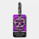 Lila faux glitter är gigalt, elegant och chic. Tatueringen av sockerskallen är en hyllning till Dia de los Muertos. Resa i stil med ett bagagetagg i monogrammet. Det är enkelt att uppdatera information om fronten och kontakten på baksidan med fet monogram.