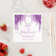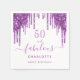 Ett trendig och en glamorös 50-årsdagars napkin. En elegant vit bakgrund som dekoreras med mörk lila färgad faux glitter drops, färgdropputseende. Med texten: 50 och fantastisk. Anpassa och lägg till en namn och en text. Lila färgad text. Ord Fabulous är skriven med ett modernt handskript i stil med dekorationer.