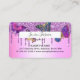 Ett trendigt lila glitter dropp fjäril falskt kreditkort. Ett kreativt och unikt sätt att dela affärsinformation. Perfekt för proffs inom skönhetsbranschen, entreprenörer, evenemangsarrangörer, ögonfransspecialister, nagelkonstnärer, frisörer, sminkartister och mer. Observera att holografiska och glitterelement är simulerade.