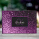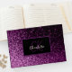 En gäst bok under en 21:a (eller någon annan ålder) födelsedagsfest. En djup lila faux glitter-bakgrund. Anpassa och lägga till namn och monogram initialer. Lägg till en egen text på ryggraden.