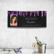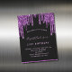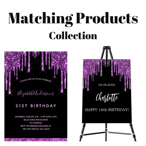 För en svensk 16, 16:e (eller någon annan ålder) födelsedag. En svart bakgrund för eleganten. Med lila faux glitter droppar, färgdroppar. Anpassa och lägg till namn och ålder 16 år. Lila text. Namn är skrivet med ett modernt handskript i stil.