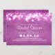 Inbjudningskort för möhippan handlar om glitz, glamor och gnistra. Dekorerad med faux glitter konetti-folie bakgrund struktur och lila-glowing string ljus. Glamorromantiskt inbjudan för vintage men ändå moderna möhippor. Observera att den här designen inte användor något fysiskt glitter att den kommer att skrivas ut på samma sätt som på datorn skärm.