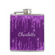 En djupt lila bakgrund med eleganta lila falska glitterdroppar, målarfärg dropp ser ut. Vit text. Personifiera och lägg till ditt namn. Perfekt för födelsedagsfester, bröllopsdusch och möhippa.