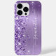 Lila glitter, som är glatt och glatt, högdagrar på den lämnat kant framför en faux amethyst lila borstat metall folie. Det moderna, gigantiska namnteckning teckensnittet har ett elegant vitt kalligrafteckensnitt med dekorativt svan. Anpassa typsnittet stilar för att skapa egna mobila växlar.