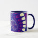 Detta färgstarka fraktalkaffe mugg har ett ljust och dynamiskt färg som lila, blått och vitt. Dessa muggar har flera olika färg att välja mellan för insidan och handtaget av mugg. Du kan också välja mellan stil och storlek om mugg. Dessa mugg är underbara för köks- och kontorsanvända.