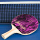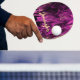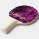 Ping pong-paddel med trendig färg och design. Girly och feminin färg. Dramatisk härva inspirerade till lila, rosa och svart färg i vågar och snurrar skapar en modern abstrakt mönster. Anpassa med ditt namn på framsidan, lätt gult färgad brev.