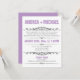 Moderna inbjudningar designade för bröllop där paret har ett destinationbröllop eller en liten privat vigselceremoni, och endast inbjuder gäster till mottagningsfirandet. Typografin på framsidan av dessa inbjudningar är designad i lila och grå typsnitt, och baksidan är en enfärgad lila med valfri vit text för eventuell RSVP-information.