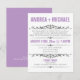 Moderna inbjudningar designade för bröllop där paret har ett destinationbröllop eller en liten privat vigselceremoni och endast inbjuder gäster till mottagningsfirandet. Typografin på framsidan av dessa inbjudningar är designad i lila och grå typsnitt, och baksidan är en enfärgad lila med valfri vit text för eventuell RSVP-information.