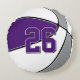 Välj dina egna färger! Denna basketlag färger rund kudde har bilden av en enkel basketboll med alternerande lila, vit och grå paneler - anpassa med idrottarens tröjnummer på framsidan - för att ändra färgerna på basketbollens lila och grå paneler (fram och bak) och tröjnumret, klicka på "Redigera denna design"-knappen (ovan) - av katz_d_zynes