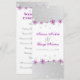 Lila silvergrå vit snöflinga bröllopsprogram, med ett vågformat band i silvergrått med stjärnor och lila eleganta snöflingor. Text i grått och lila. En stilren design perfekt för ditt vinter-, december- eller julbröllop. Modern och samtida men lämplig även för ett traditionellt bröllop. Denna eleganta, klassiska design kan användas för andra speciella tillfällen som förlovningar eller årsdagar.