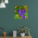 Skriv ut i en mycket detaljerad grapevine med lila druvor och grönt lövs