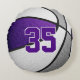 Den här basketkudden för pojkar och flickor har en realistisk bild av en basket som har omväxlande lila, vita och grått-färgade paneler - personliggör med idrottsmannens jersey-nummer på fram och tillbaka - av katz_d_zynes