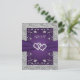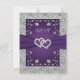 Det här romantiska bröllopet OSA för lila och grått blommigt med val av måltid ger en bild av ett par gått med hjärtan som finns ovanpå ett lila band som löper tvärs över mitten av responskortet. Baksidan har en grått-bakgrund med uppgifter om OSAN och val av måltider tryckta på lila med en lila rulla ram som omger ordalydelsen. Det finns en simulerad silver gräns runt hela kortet på framsidan och baksidan. Om du behöver ytterligare matchande artiklar skickar du en e-postbegäran till niteowlstudio@gmail.com eller användor Zazzle-chattan för att få kontakt.