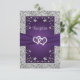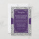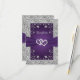 Det här romantiska mottagningskortet för lila och grått blommigt har en bild av ett par gått med hjärtan överst en bild av lila band som löper tvärs över kortets mittpunkt. Baksidan har en lila bakgrund med mottagningsdetaljer eller annan information tryckt i lätt grått med en simulerad silver rulla ram som omger ordalydelsen. Det finns en simulerad silver gräns runt hela kortet på framsidan och baksidan. Om du behöver ytterligare matchande artiklar skickar du en e-postbegäran till niteowlstudio@gmail.com eller användor Zazzle-chattan för att få kontakt.
