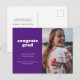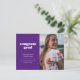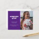 Meddela din examenstagares stora prestation med detta enkla men stilrena examensmeddelande och inbjudan. Den har orden "congrats grad" i ett vitt retrofont på en lila bakgrund samt utrymme för ett foto på framsidan. Använd baksidan av vykortet för detaljer om firandet av din examenstagare.