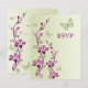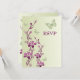 Lila, grön blomsterrik svarskort med fjärilar inbjudningar
