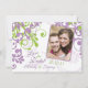 Texten och förlovningen på dessa elegant lilac, lavender eller ljusviolett lila, vår grönt (eller kalkgrön, chartreuse) och bröllop blommigt med vit vintage är helt spara datum meddelande. Du kan ändra dem båda med "personalisera". Om du vill göra mer omfattande ändringar av kortet, t.ex. ändra teckensnitt, färg, storlekt teckensnitt eller text- och/eller fotoplacering, användor du alternativet "anpassa det". Utformningen påminner om en vacker blommigt trädgård. Det finns en mängd olika pappra typalternativ att välja mellan.
