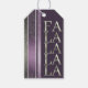 Om du undrar vilka färg-kombinationer du har till plockan för din juldekoration och presentplakat i år, har jag skapat samlingar av samordning av mönster för att göra livet lite enklare. Den här presentens märkre har en modern, lodrät rand-design, med glitter och grunge-effekt, som visas här i en djup äggplanta lila och oliv grönt färg palett. Lodrät "Fa La La La" i grönt lägger till en roligt accent. Sök i ID1009 för att se andra produkter och mönster i det här färg-schemat.