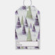 Om du undrar vilka färg-kombinationer du har till plockan för din juldekoration och presentplakat i år, har jag skapat samlingar av samordning av mönster för att göra livet lite enklare. Den här presentens märkre har en modern skiss och vattenfärgsdesign för träd på snönära backe och visas här i en slående palett för lila och grönt färg. Lägg till texten med hjälp av den angivna mallen. Sök i ID1009 för att se andra produkter och mönster i det här färg-schemat.