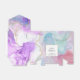 Liten affär med en vacker konstnärlig målning. Skapat med flytande bläck. Lila, grönt och blått färg som flyter samman. Tunt vågigt rosett band i guld blandat med dessa mjuka, mjuka färg. En vit kvadrat med faux guld foil gräns överst med texten inuti.
