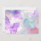 Bröllop spara datum-kort med en vacker abstrakt. Skapat med flytande bläck. Lila, grönt och blått färg som flyter samman. Tunt vågigt rosett band i guld blandat med dessa mjuka, mjuka färg.