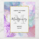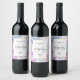 Vin flaska-etiketter med en vacker konstnärlig målning. Skapat med flytande bläck. Lila, grönt och blått färg som flyter samman. Tunt vågigt rosett band i guld blandat med dessa mjuka, mjuka färg. En rektangel ram med faux-guld-foil gräns överst med texten inuti.