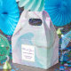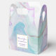 Liten affär med en vacker konstnärlig målning. Skapat med flytande bläck. Lila, grönt och blått färg som flyter samman. Tunt vågigt rosett band i guld blandat med dessa mjuka, mjuka färg. En vit kvadrat med faux guld foil gräns överst med texten inuti.