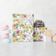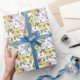 Lila gul vit blommig med gröna blad inslagspapper. Perfekt för födelsedagar, bröllopsdusch, examina, bröllop.