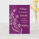Födelsedagskort för gudmor med modern lila och gula blommor och tänksam vers.