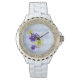 Snygg vit med Rhinestones Watch, med vår Lila & Gula blommor Lakan Music Design - Underbar Mors dag Gift! Lakan Music Image Licensierad från och copyrightad av Graphics Factory